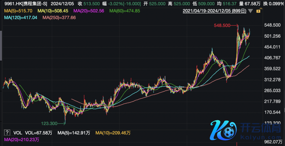 携程好意思股方面,自2022年头的低点以来,股价最高也涨超380%。