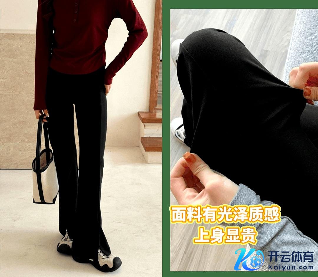 最近,两条裤子杀出重围,外传穿上就变“腿精”:高腰开叉微喇小黑裤,和露露柠檬作风的喇叭卫裤。